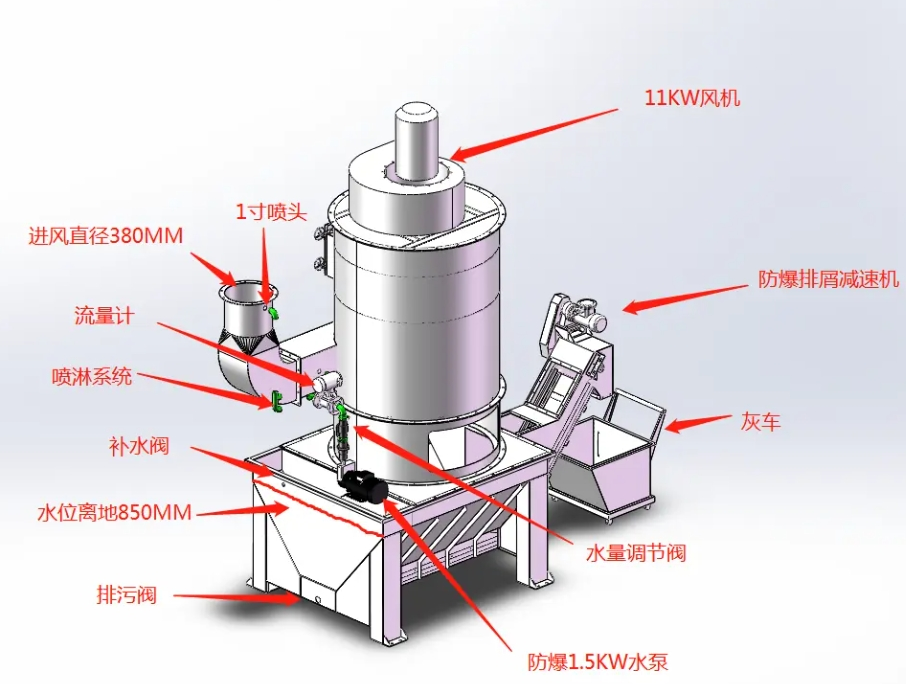 火花捕集:在文丘里管入口增設火花熄滅裝置,攔截高溫顆粒。