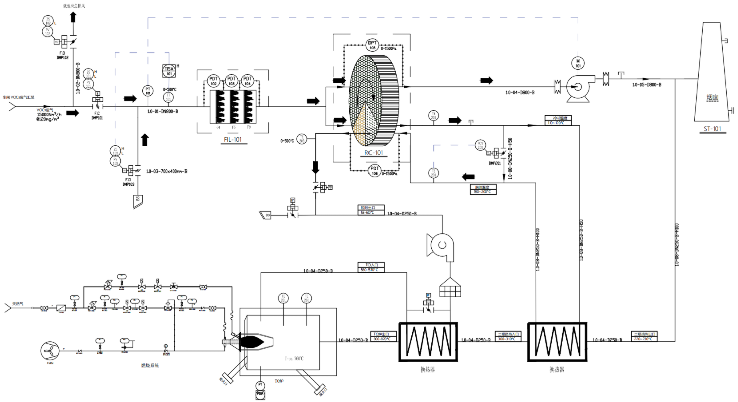 在有機廢氣治理行業(yè)中,將質(zhì)量濃度低于1000mg/m3的有機廢氣統(tǒng)稱為低濃度有機廢氣。對于低濃度有機廢氣的治理,沸石轉(zhuǎn)輪濃縮+TO工藝得到廣泛應用,即采用疏水性沸石分子作為吸附劑將廢氣中的低濃度的VOCs吸附下來,使廢氣凈化后排放,經(jīng)一段時間的吸附后,沸石分子達到飽和狀態(tài),再用熱空氣對沸石分子進行脫附解吸,形成小風量、高濃度的有機廢氣,再進行高溫分解無害化處理。