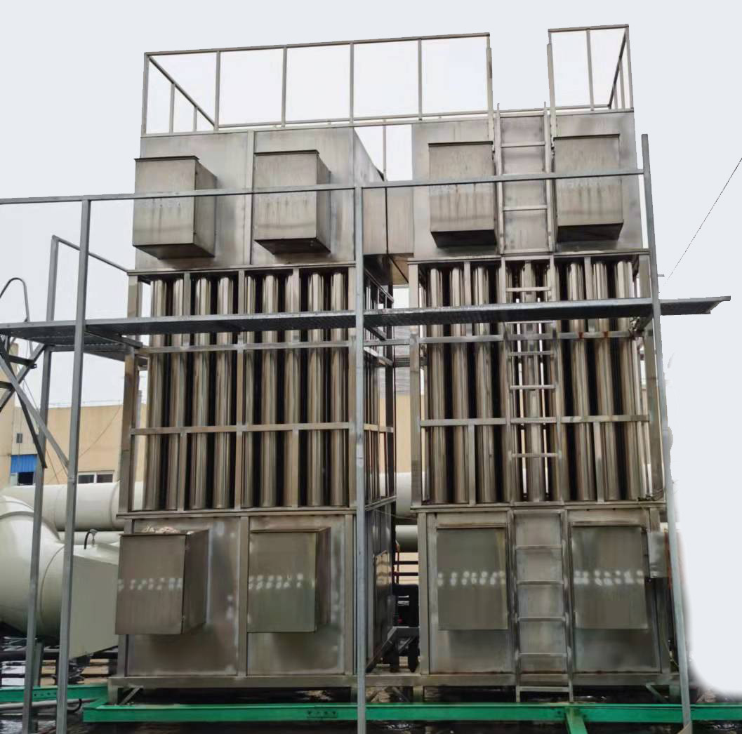 結(jié)構(gòu):主要架構(gòu)采用耐腐蝕不銹鋼材料制作,運(yùn)用波紋狀斜板填料,風(fēng)機(jī)和凈化器連為一體。