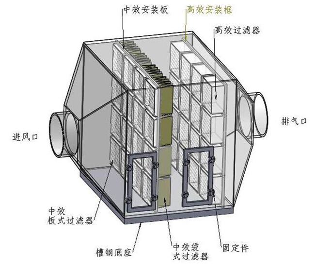 過濾材料選用目前凈化效率的玻璃纖維網,這種干式過濾材料是根據污染物凈化的特點專業開發出來的,它由玻璃纖維多層復合而成,密度隨著厚度逐漸增大,后面用一層不同材質起支撐作用,具有高效、容量大、運行費用低、阻燃等特點。為了保證凈化的高效率,保證排放氣體符合國家排放標準,過濾器采用二級過濾的辦法,在第一級過濾的基礎上再進行第二級過濾,而且第二級過濾材料更均勻,密度更高,孔徑更細,二級過濾后漆霧的凈化率可達到95%以上。
