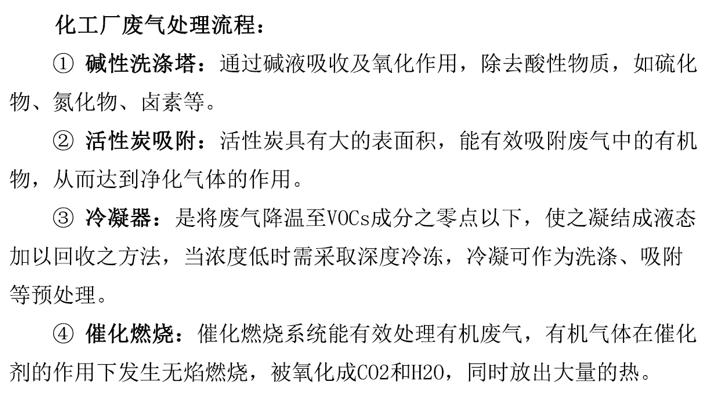 隨著環(huán)境保護的日益嚴格,化工企業(yè)的廢氣處理應符合環(huán)保排放標準。因此,根據(jù)化工行業(yè)的特點,以下化工廢氣處理設備僅供參考: