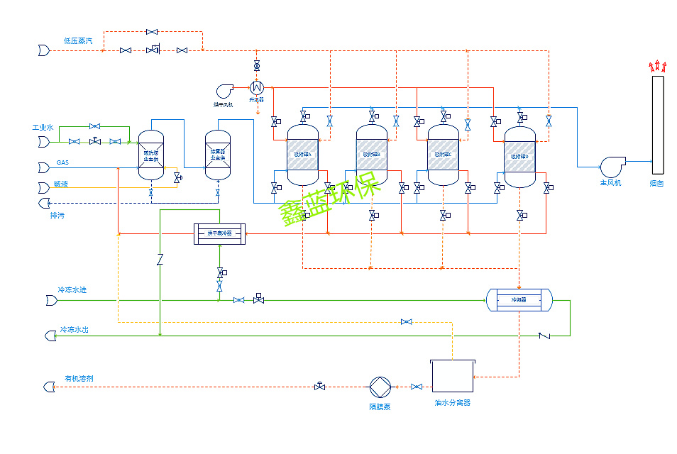 二、樹脂吸附脫附+冷凝回收工藝流程