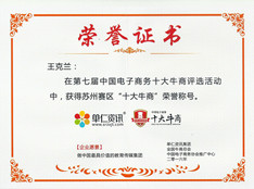 歷經數月,第七屆電子商務蘇州十大牛商的評選活動已落下帷幕,于3月10日,被評為蘇州十大牛商的名額已揭曉,我司鑫藍副總經理克蘭名列其中,公司全體人員對此倍感榮幸。特別感謝,牛商團隊的全體人員對我司鑫藍的支持及新浪微博、現代快報為我司鑫藍的報道。